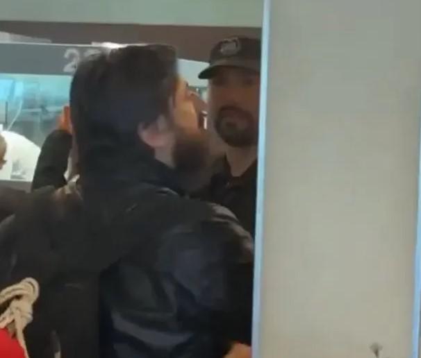 En medio del tumulto, se acercó un efectivo de la Policía de Seguridad Aeroportuaria (PSA), que intentó alejarlo de quienes estaban en la fila.