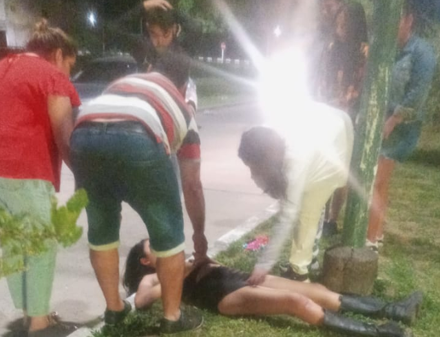 A simple vista la menor no presentaba lesiones pero de manera preventiva se solicitó una ambulancia siendo trasladada al Hospital "4 de Junio". Ocasionales transeúntes afirmaron que minutos antes la adolescente circulaba de acompañante en una motocicleta marca Motomel, de 110 cc., color rojo y gris, guiada por un sujeto que perdió el control del rodado y luego de la caída se dio a la fuga dejando tirada en la calle a la adolescente; aclarando que no hubo otro vehículo partícipe.
