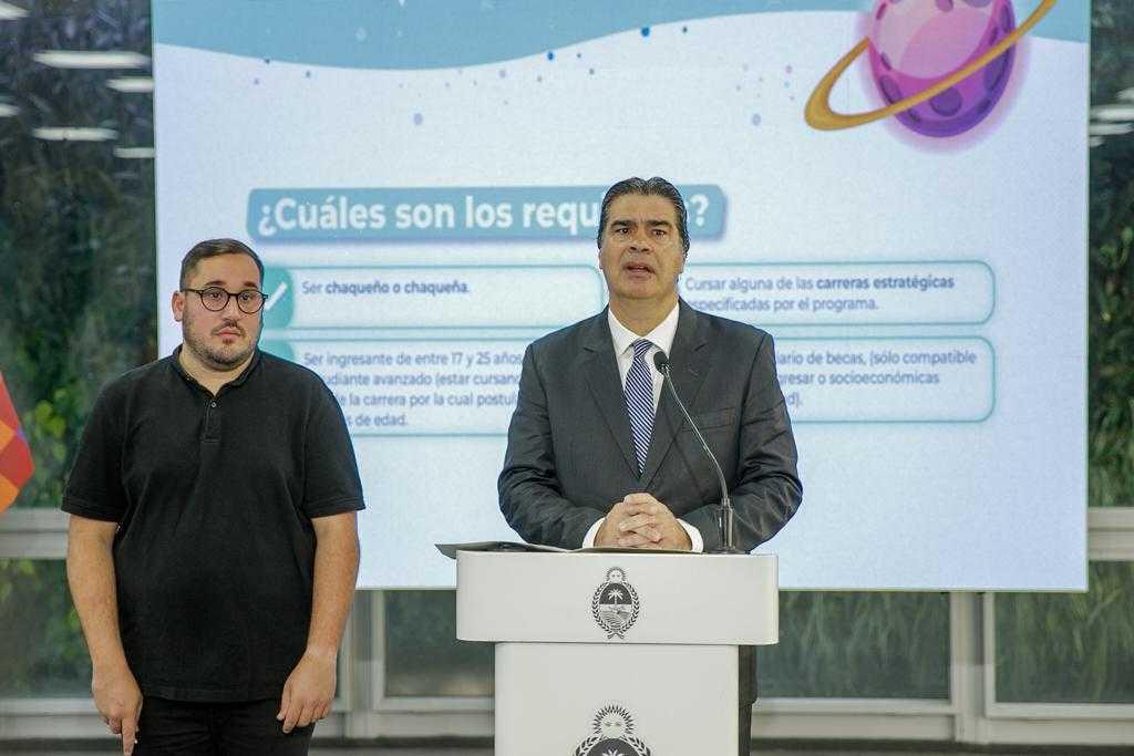 El gobernador Jorge Capitanich, acompañado por el ministro de Planificación, Economía e Infraestructura, Santiago Pérez Pons presentó este miércoles la convocatoria 2023 para las becas ENFOQUE. La convocatoria para participar del programa ENFOQUE estará abierta desde el 6 al 20 de marzo. Esta es una iniciativa para fortalecer áreas estratégicas del sector público, construir un Estado más eficiente y promover el desarrollo de nuestra provincia.