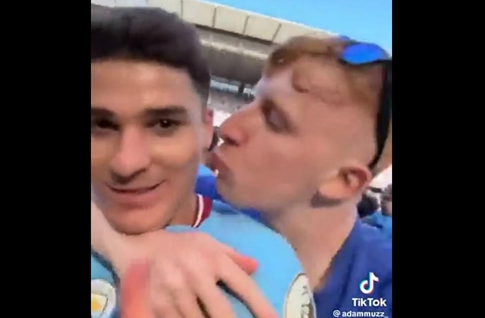 Al finalizar el partido, los “citizens” invadieron el campo de juego del Etihad Stadium para celebrar el título con los jugadores. En ese marco, uno de los hinchas del City corrió directamente a abrazar a Julián y filmó todo con su celular.