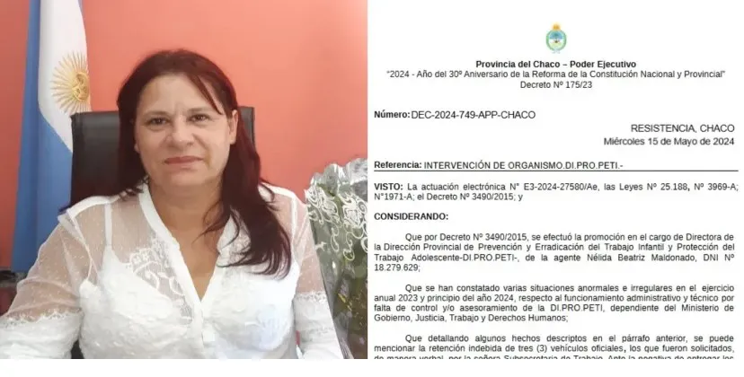 Intervienen por 180 días a la Dirección Provincial de Prevención y Erradicación del Trabajo Infantil y Protección del Trabajo adolescente e inician un sumario administrativo a su exdirectora, Nélida Beatriz Maldonado. La medida deriva de una serie de irregularidades en el organismo durante el 2023 y 2024. La nueva persona a cargo de la Dirección será la escribana María Martha Marcón.