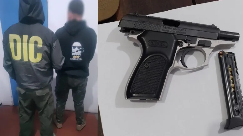 Al llegar al lugar, constataron que personal del Departamento Investigaciones Complejas, tenían demorado a un hombre de 37 años y secuestraron una pistola Bersa calibre 22 con diez cartuchos.