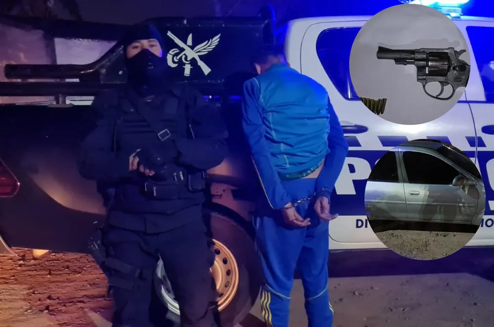 El hombre fue sometido a un control y se encontró en su poder un arma calibre 22 con 8 cartuchos, marca "GALAND", y un vehículo Chevrolet Corsa Classic, color gris.
