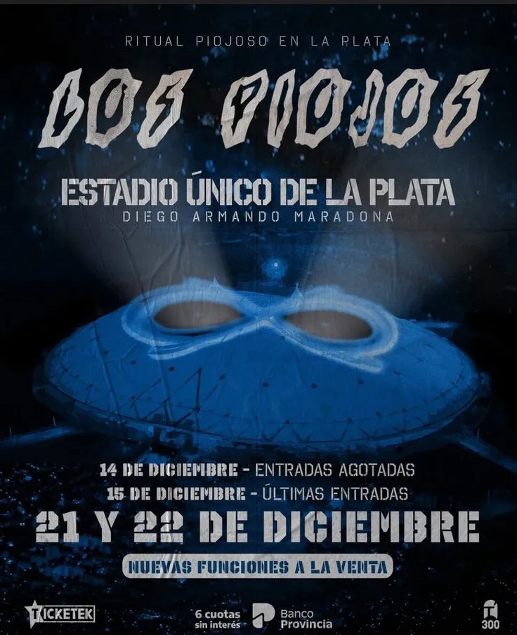 La banda liderada por Andrés Ciro Martínez informó que también se presentarán el 21 y 22 de diciembre en el estadio platense. Para conseguir las entradas, la metodología es la misma: a través del portal de Ticketek, los seguidores del conjunto de rock deberán ingresar y ubicarse en la cola virtual para no perderse el concierto piojoso.