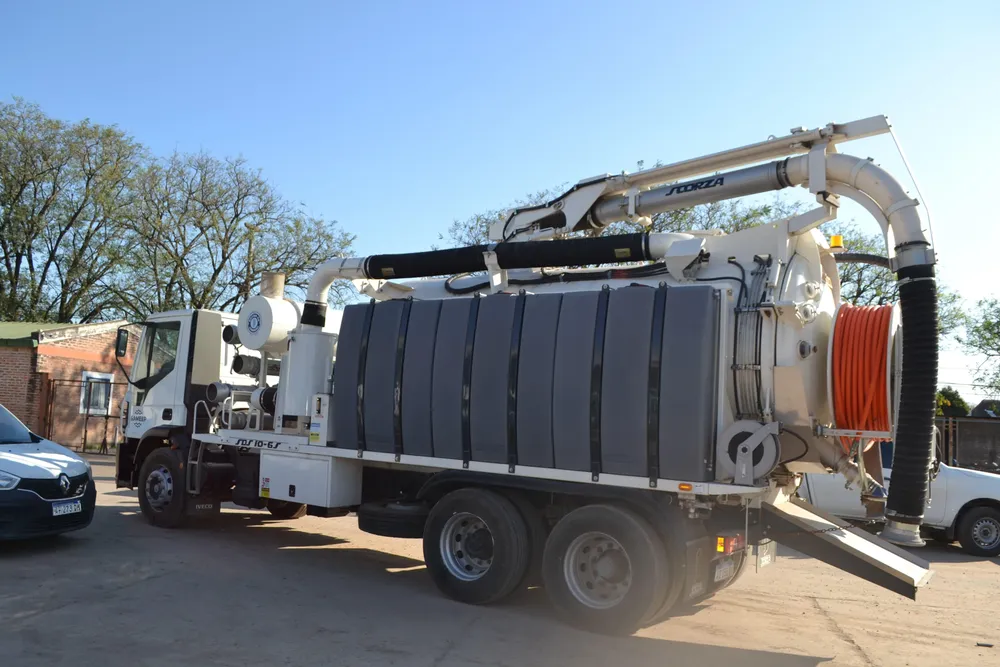 También, este vehículo cuenta con una manguera que es la que aspira los sólidos y residuos que se encuentran dentro de las bocas de registro, y otra manguera que tiene una bomba de alta presión que inyecta agua dentro de la cañería y hace el trabajo de desobstrucción. Esto permite un mayor mantenimiento a las cañerías.