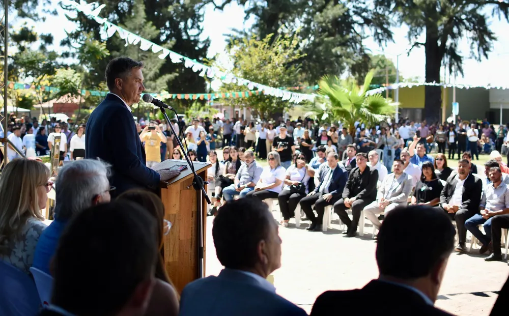 Este sábado, por la mañana, el gobernador Leandro Zdero encabezó el acto aniversario 107° de La Verde junto al Intendente Federico Peón y a toda la comunidad, en una nueva celebración que incluyó obras trascendentales para la localidad. “El cambio de traza del tendido eléctrico, iluminarias en toda la localidad también como el servicio de transformador para las familias del Barrio Norte que realmente lo estaban necesitando. Nos contaban los vecinos que ante las inclemencias del tiempo y hasta en dificultades mínimas que por ahí solían ocurrir, el pueblo entero se quedaba sin luz y en este sentido avanzamos en este barrio histórico del Barrio Norte. Nos pone muy contentos porque las familias nos contaron que después de casi 30, 40 años que tenían grandes dificultades, hoy vuelven a tener un servicio estabilizado, pero también con más logros desde la salita de primeros auxilios, del Barrio Malvinas hasta la mejora en infraestructura escolar, así que ayudando a todas y cada una de las instituciones y muy contento de estar compartiendo estos 107 años de vida de esta hermosa localidad”- señaló el Gobernador.