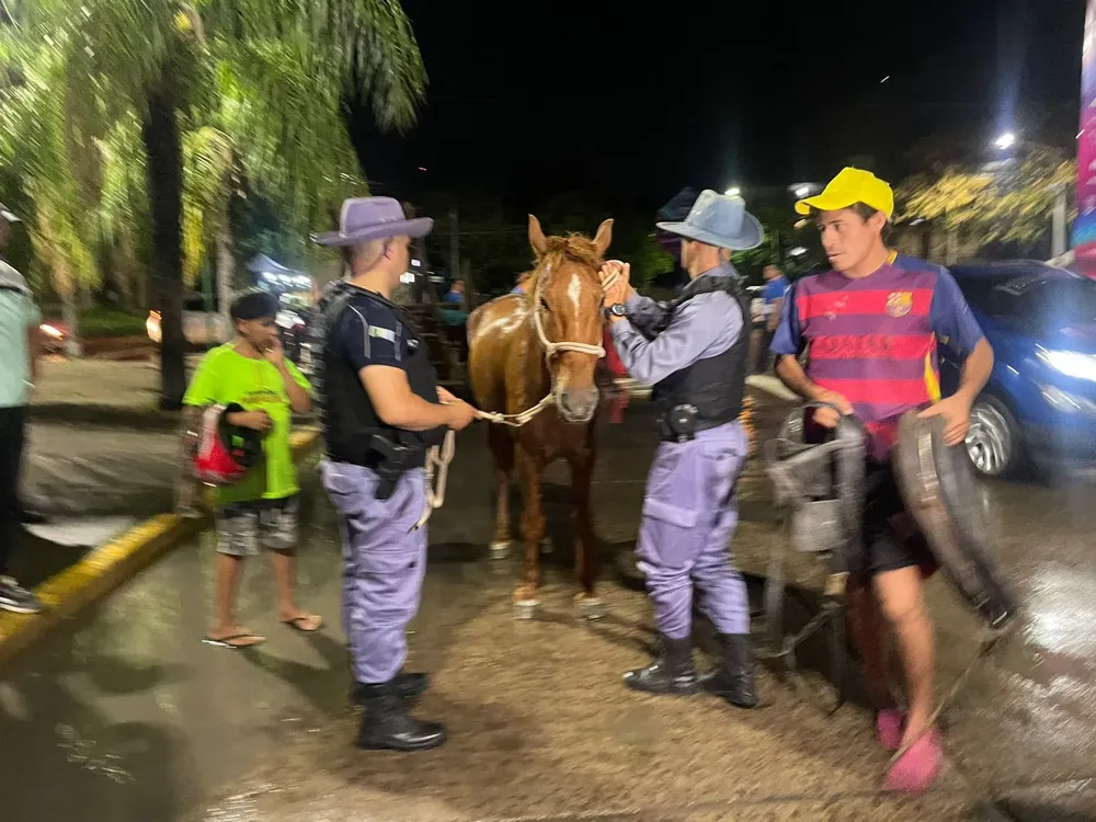 Los propietarios del equino fueron notificados de la contravención, mientras que el caballo fue trasladado por la Policía Rural y el carro quedó bajo resguardo del Tránsito Municipal.