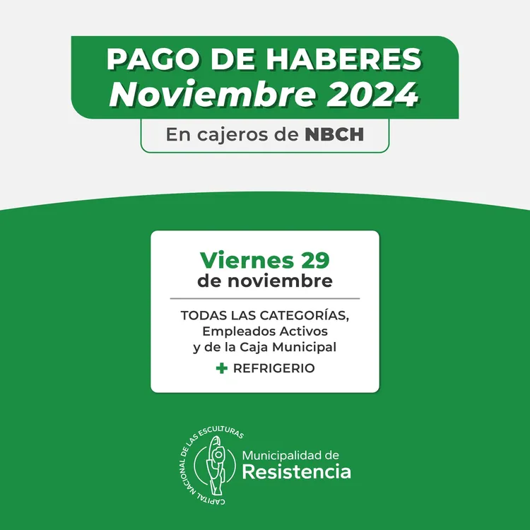 La Municipalidad de Resistencia pagará los sueldos correspondientes al mes de noviembre, este viernes 29, al igual que el Refrigerio.