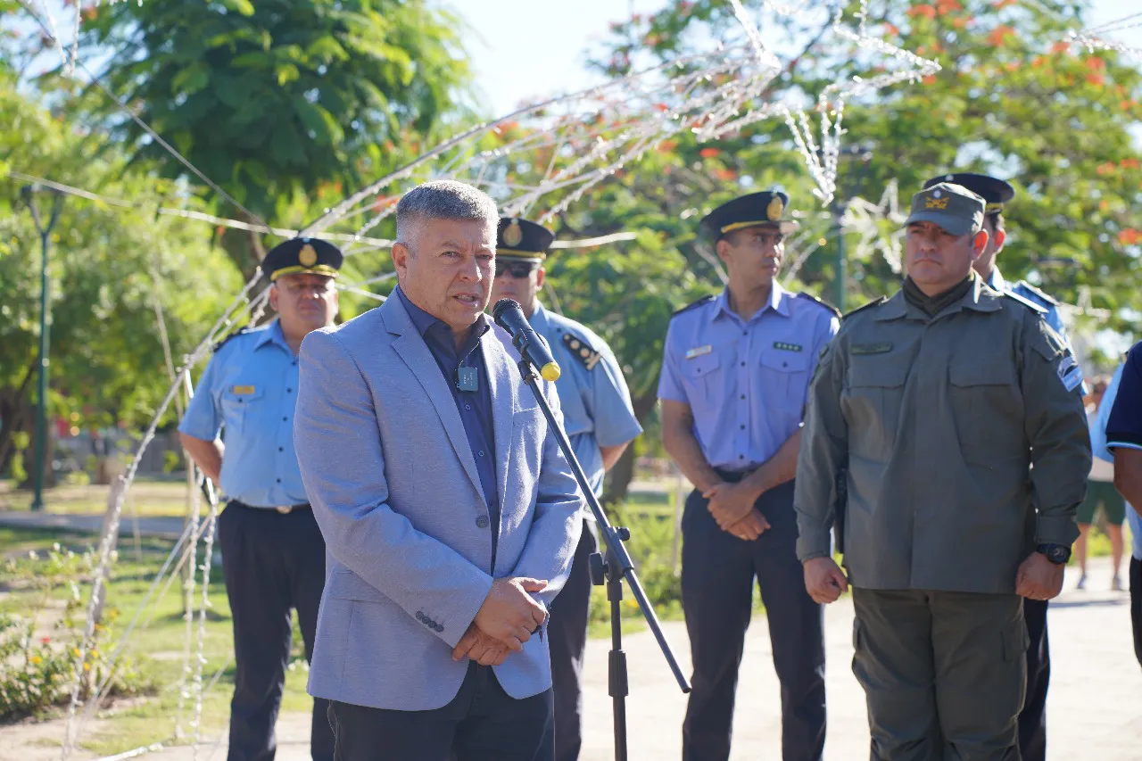 Esta mañana alrededor de las 8:30, en General San Martín, se realizó el acto de lanzamiento del operativo "Felices Fiestas", el cual consiste en reforzar las patrullas en un servicio de seguridad con la modalidad caminantes en el que participan a diario gran cantidad de efectivos y alumnos de policía.