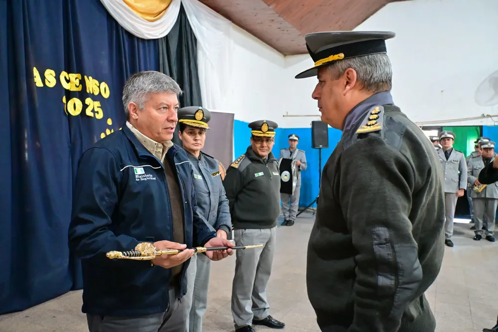Matkovich, quien transmitió el saludo del gobernador Zdero y expresó el acompañamiento permanente del gobierno a la institución, y felicitó al personal ascendido, reconociendo su trayectoria con la labor que desempeñan, siempre en el marco de la ley. Durante su discurso, el ministro destacó: “Este reconocimiento no es solo por el trabajo que hacen todos los días, sino también por el esfuerzo que ponen ustedes y sus familias. Hoy vemos una institución en crecimiento, con cadetes en formación y agentes ya prestando servicio en distintos lugares de la provincia.”