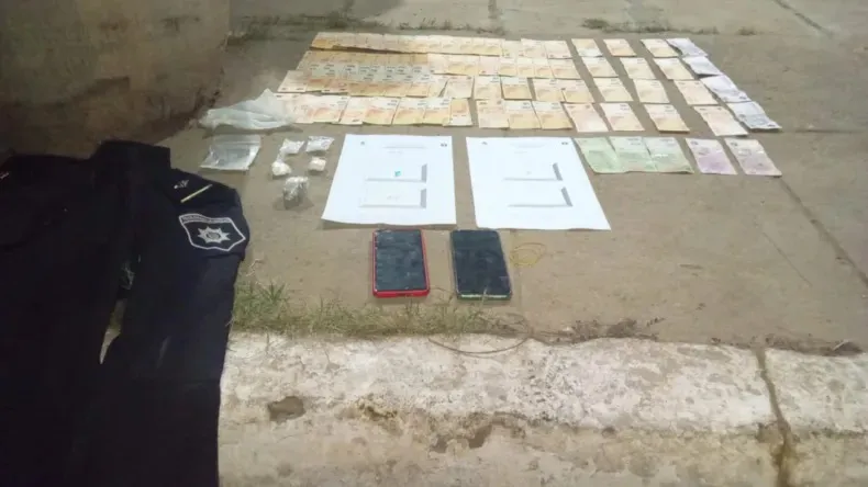 Según consta en el informe policial, el acusado mostró resistencia al momento de ser abordado por los agentes, por lo que fue reducido y esposado en el lugar. En la requisa personal, se hallaron envoltorios con sustancias ilegales ocultos en la zona genital: uno contenía 15,7 gramos de cocaína y el otro, 8,3 gramos de cannabis. Además, portaba $79.700 en efectivo en uno de los bolsillos del pantalón.