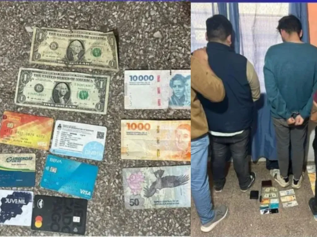 Los aprehendidos fueron identificados como L.G.B., de 29 años, quien llevaba consigo un equipo de mate, $50.000, tarjetas y su documento. El segundo, A.T.C., de 23 años, tenía una mochila negra que contenía un destornillador largo con una goma atada, $11.000 en efectivo, dos billetes de un dólar y varias tarjetas de débito.