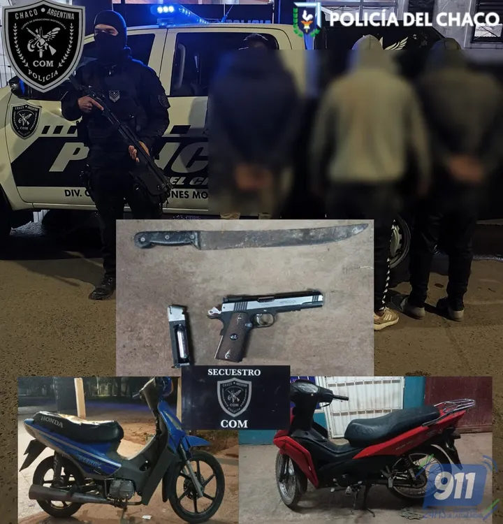Al llegar al lugar, los agentes encontraron a tres hombres a bordo de dos motocicletas, quienes, según testigos, estaban intimidando a transeúntes con armas de imitación. Los demorados tienen 26, 28 y 29 años de edad.