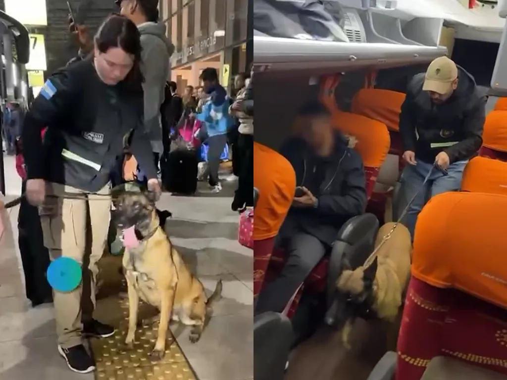 Durante el procedimiento se realizaron controles en micros de larga distancia e identificación de pasajeros. La intervención incluyó también el trabajo de “Sacha”, el can detector de estupefacientes, que fue clave en el recorrido, trabajando junto a su guía en tareas de inspección.