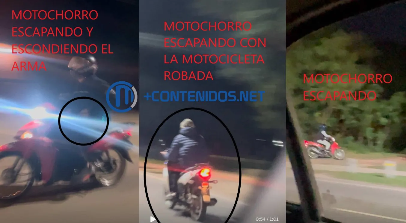 Afortunadamente, ninguno de los proyectiles impactó en su cuerpo, pero los asaltantes lograron huir con su motocicleta. Toda la secuencia fue grabada por un automovilista que pasaba por el lugar y logró filmar el escape de los delincuentes, material que podría ser clave para la investigación.
